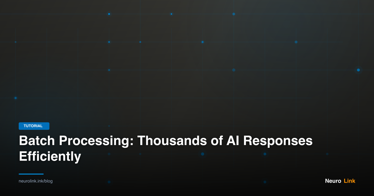 In this guide, you will process thousands of AI requests efficiently using NeuroLink’s batch processing patterns. You will implement concurrency-controlled batch execution, progress tracking, error recovery with checkpointing, and cost-optimized model selection for high-volume workloads.