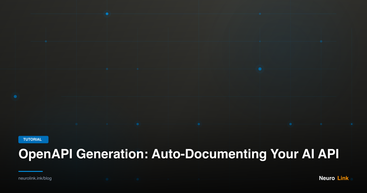 NeuroLink includes an OpenAPI 3.1 specification generator that auto-generates documentation from your route definitions, including request and response schemas, security schemes, and streaming endpoint annotations. The output is ready for Swagger UI, Redoc, or client SDK generation.