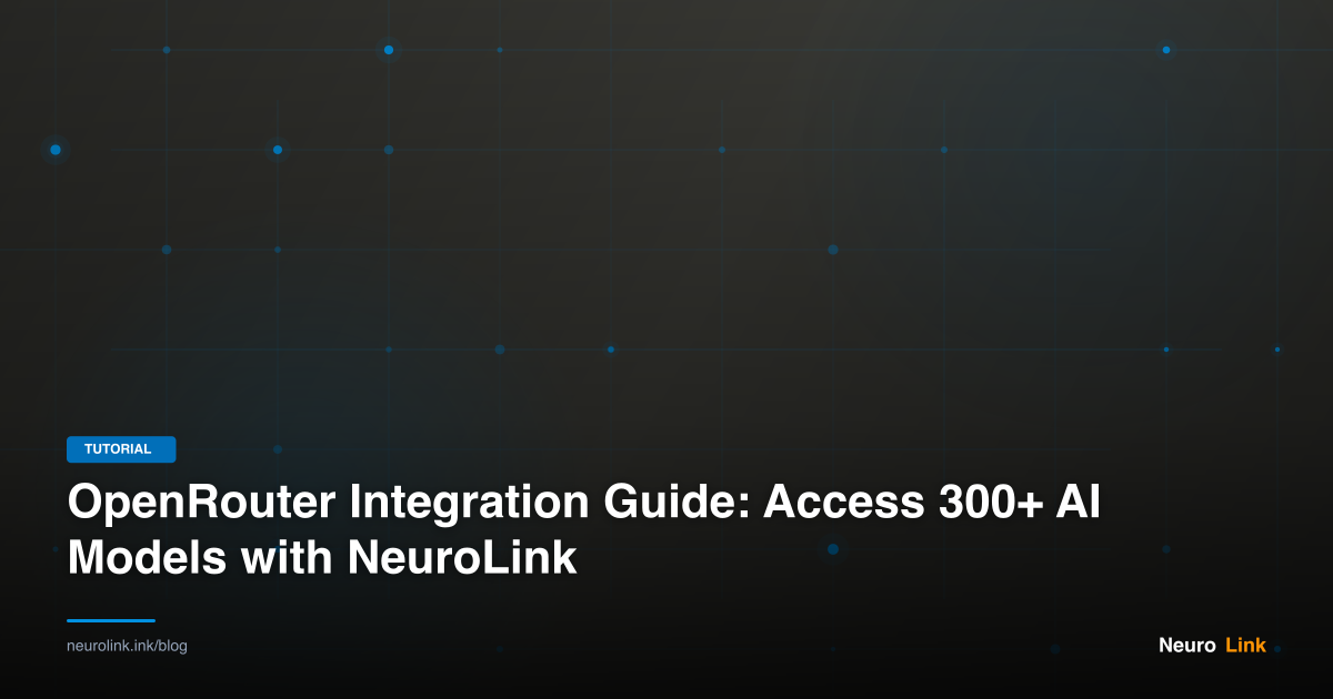 This guide walks you through complete OpenRouter integration with NeuroLink. You will learn setup, model selection, advanced patterns, and cost optimization. By the end, you will access any major AI model through a single, type-safe TypeScript interface.