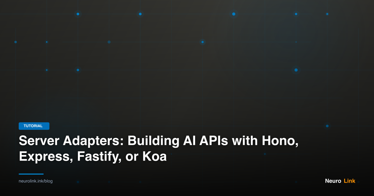 In this guide, you will build AI-powered APIs using NeuroLink’s server adapters for Hono, Express, Fastify, and Koa. You will configure each framework, add streaming endpoints, implement middleware for authentication and rate limiting, and deploy a production-ready AI API server.